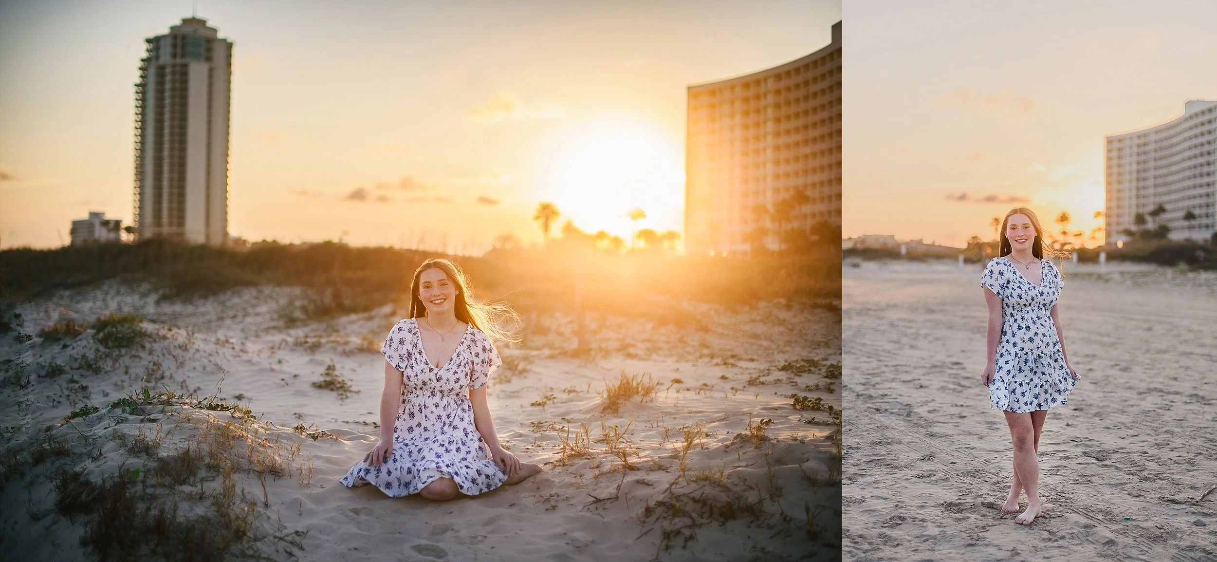Galveston Beach Photo Session at East Beach | Teen Portraits with Coastal Sunset Light