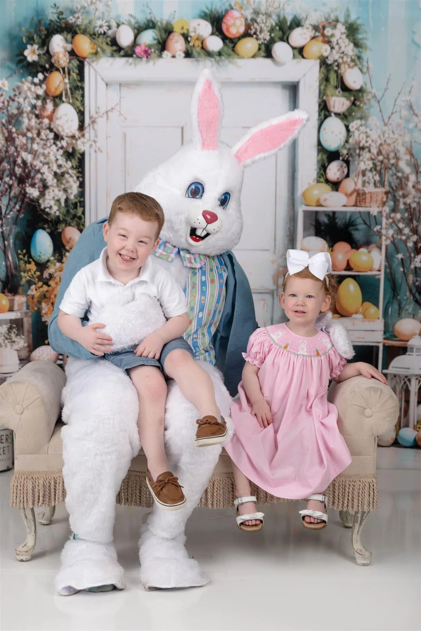 This year’s backdrop features a white cottage with roses — soft, timeless, and perfect for children’s spring portraits.